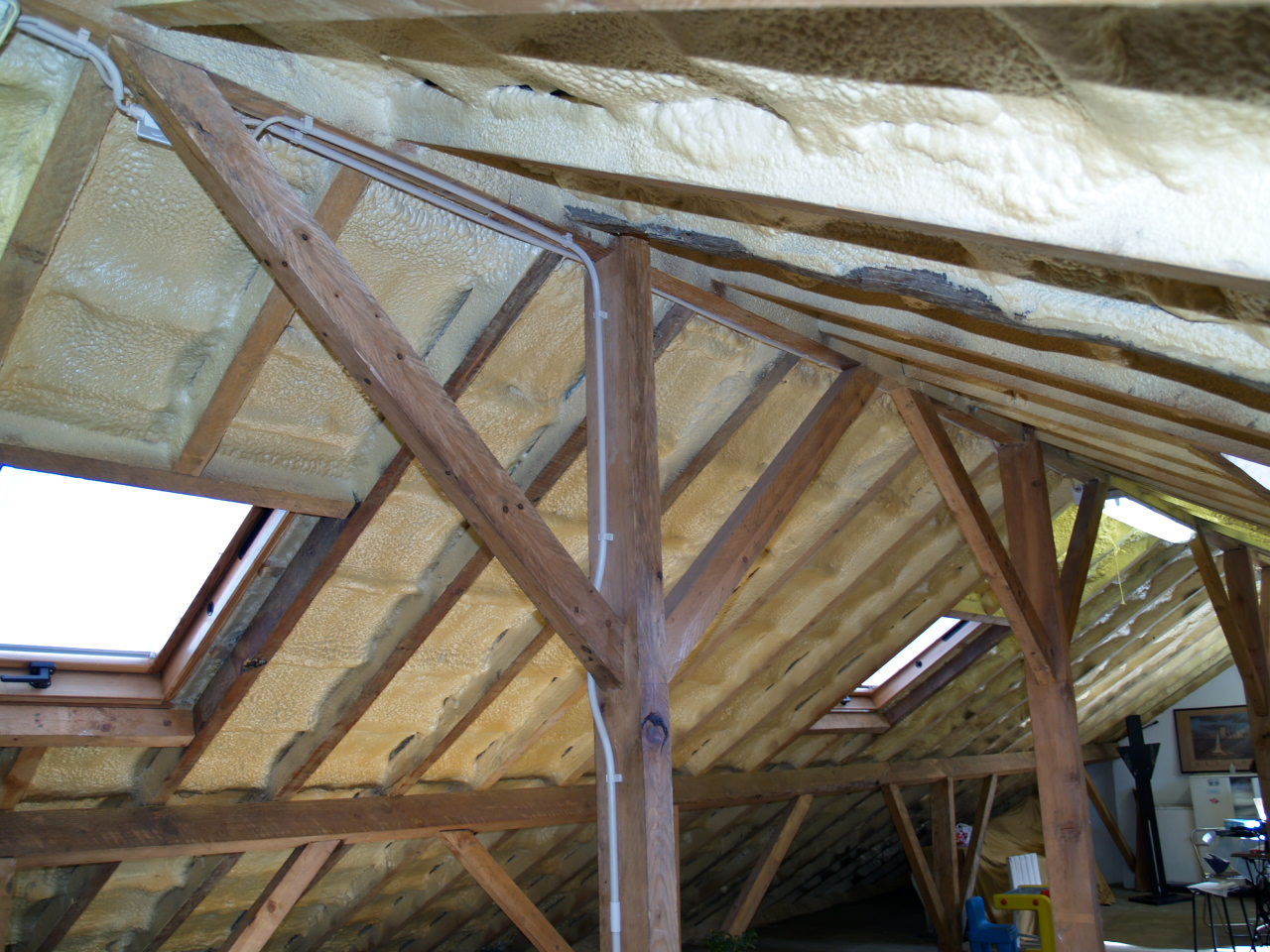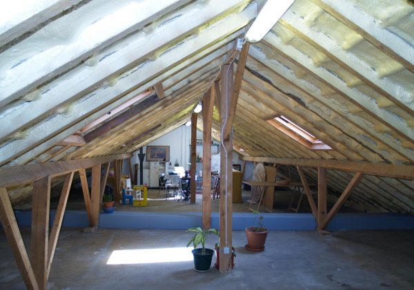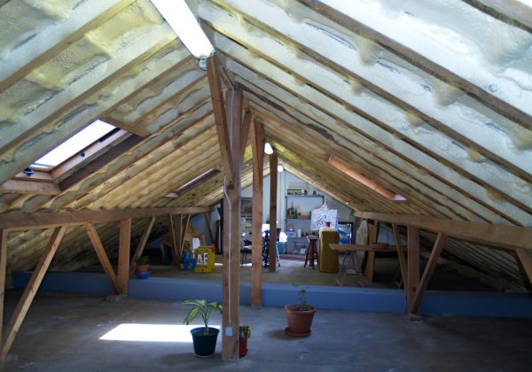 Execução de nova estrutura de sustentação, colocação de novas telhas, clarabóia e aplicação de revestimento em espuma de poliuretano estrugido.