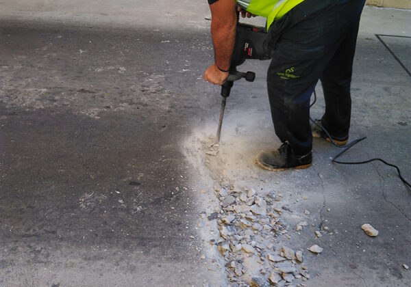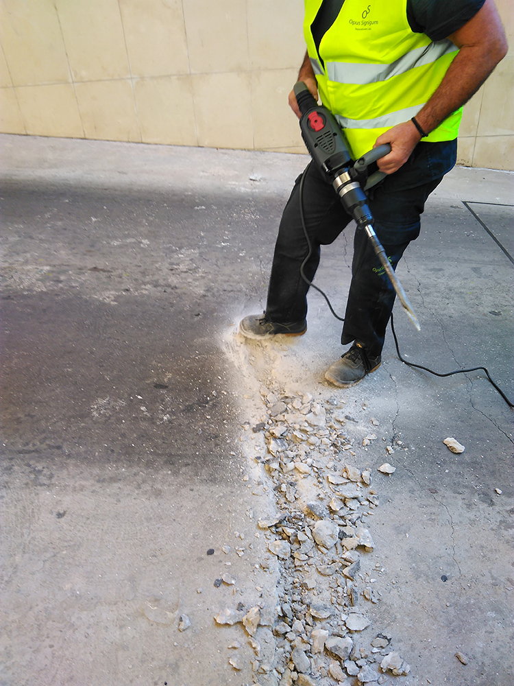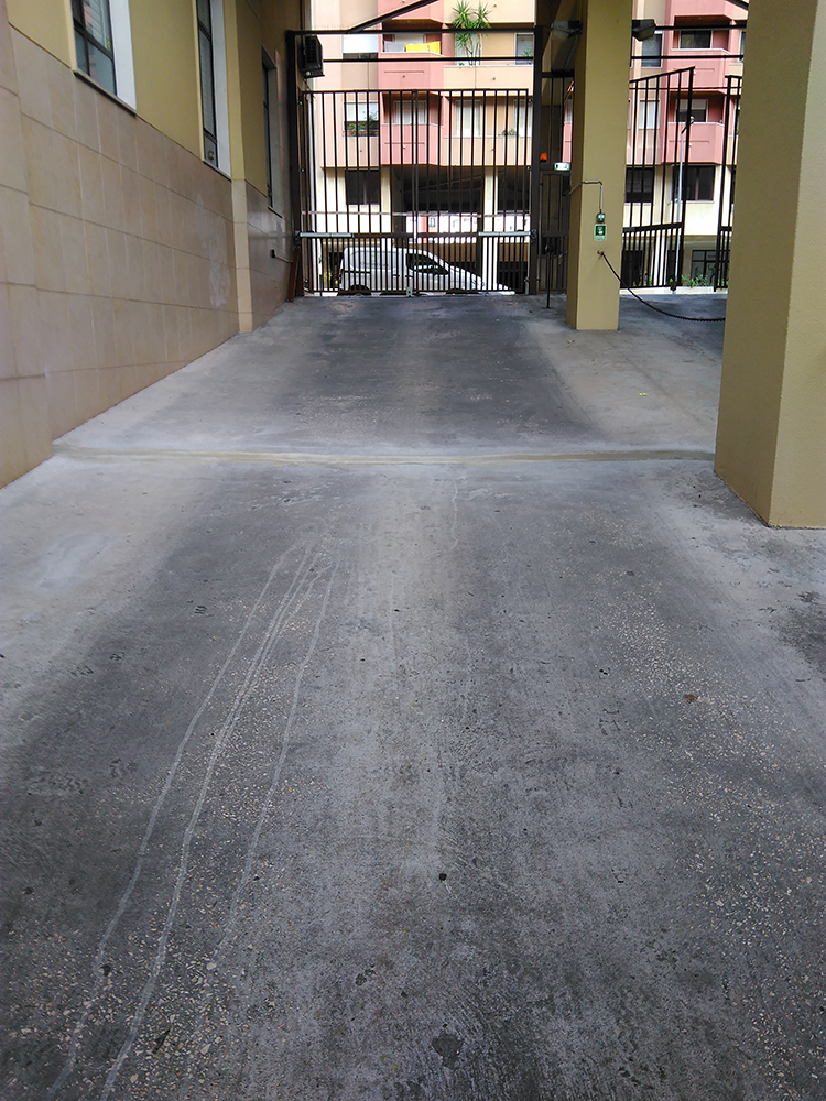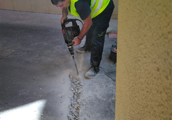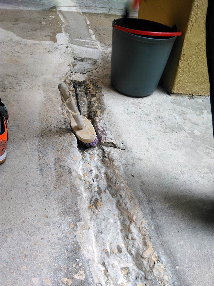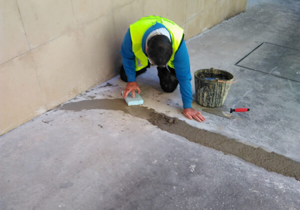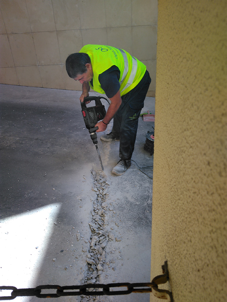 Reparação / Colmatação das Infiltrações: Protecção e isolamento de superfícies e equipamento com mantas de tecido e películas de plástico; Lavagem de superfícies a intervencionar com jacto de água a alta pressão e adjuvante líquido desengordurante; Alegrar as fissuras mecanicamente de forma a permitir a aplicação de agentes químicos; Fornecimento e aplicação de Spend/Labo na referida abertura; Fornecimento e aplicação de Durfix/Labo, na referida junta; Remoção de peliculas de plástico e mantas de tecido de protecção de superfícies e equipamentos e seu transporte para vazadouro autorizado.